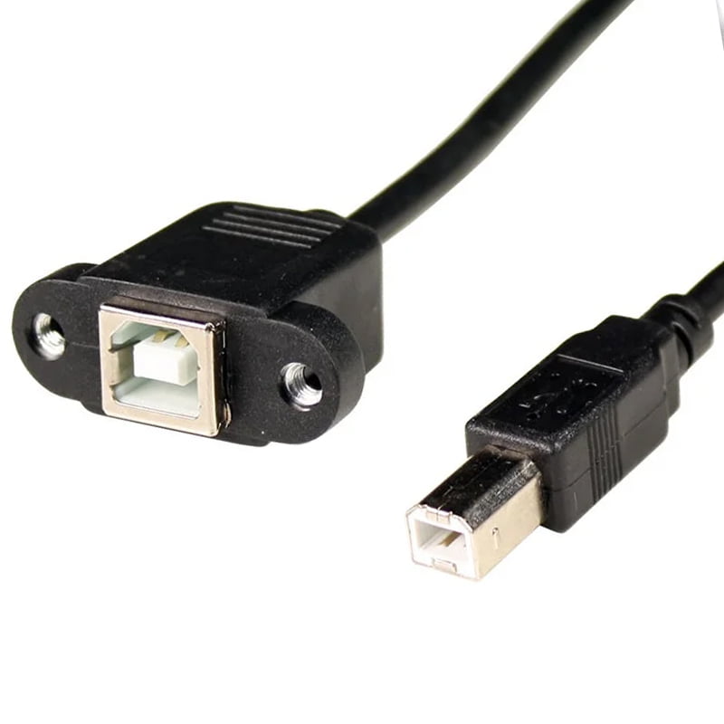 This cable serves as an extension for USB 2.0 connections, specifically between a female B socket (commonly found on printers) and a male B plug. With a length of 50cm, it allows flexibility in connecting devices and includes a panel mount for secure installation.
