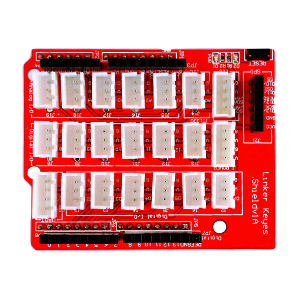 An I/O expansion board serving as a base shield for Arduino, facilitating the connection of various sensors and modules for enhanced project capabilities.