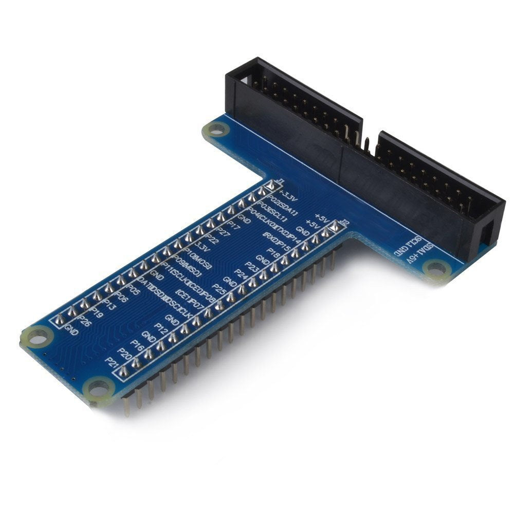 A GPIO breakout board for Raspberry Pi (T-Cobbler Plus V2.2), simplifying the connection of GPIO pins to a breadboard for prototyping.