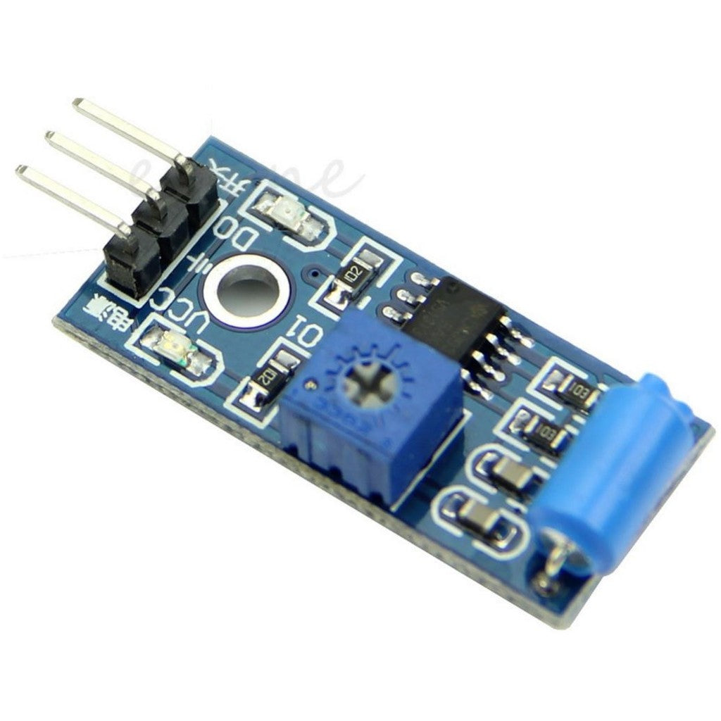 An SW-420 vibration sensor module with a normally closed configuration, designed to detect vibrations or shocks in electronic projects.