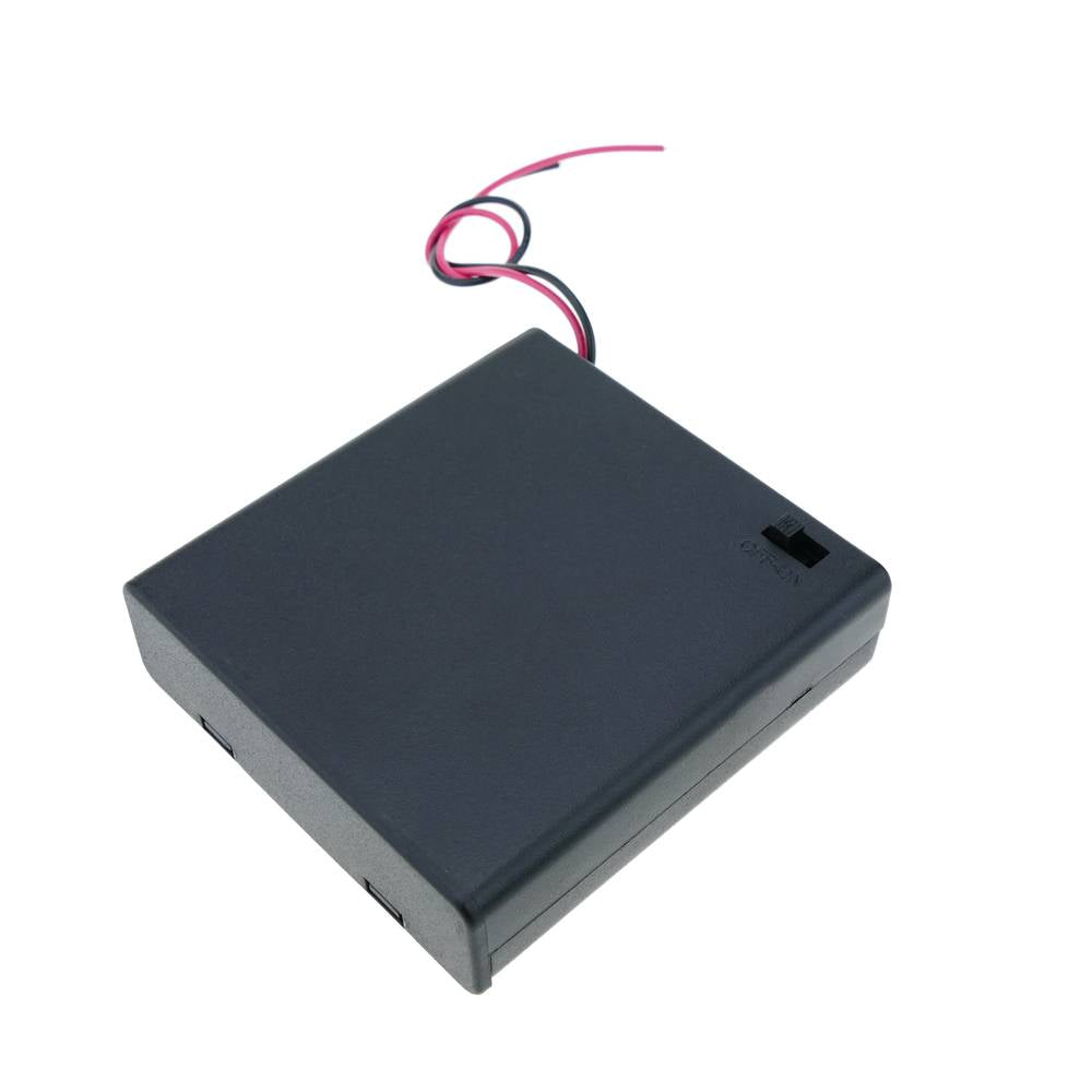 A back-to-back arrangement of two 4 x AA battery holder boxes, suitable for providing a higher voltage in electronic projects.
