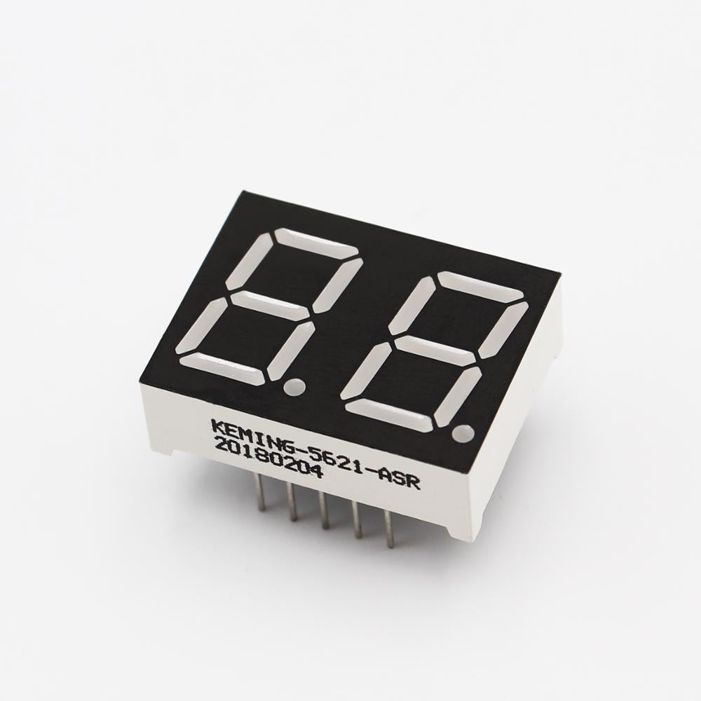 A 0.56-inch red LED display with two digits, arranged in the common anode configuration of 7-segment displays. This component is ideal for showcasing numerical information in electronic projects.