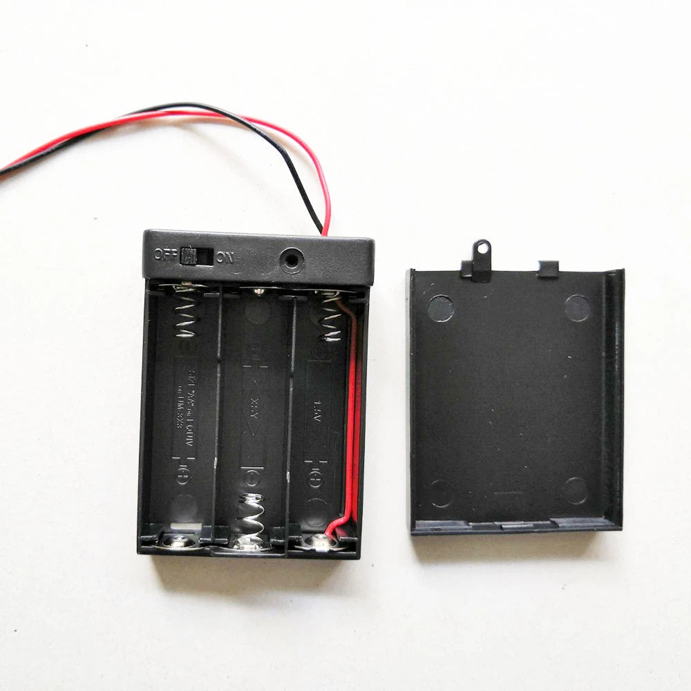 A 3 x AA battery holder box with a cover and on-off switch, allowing convenient power management for electronic devices.