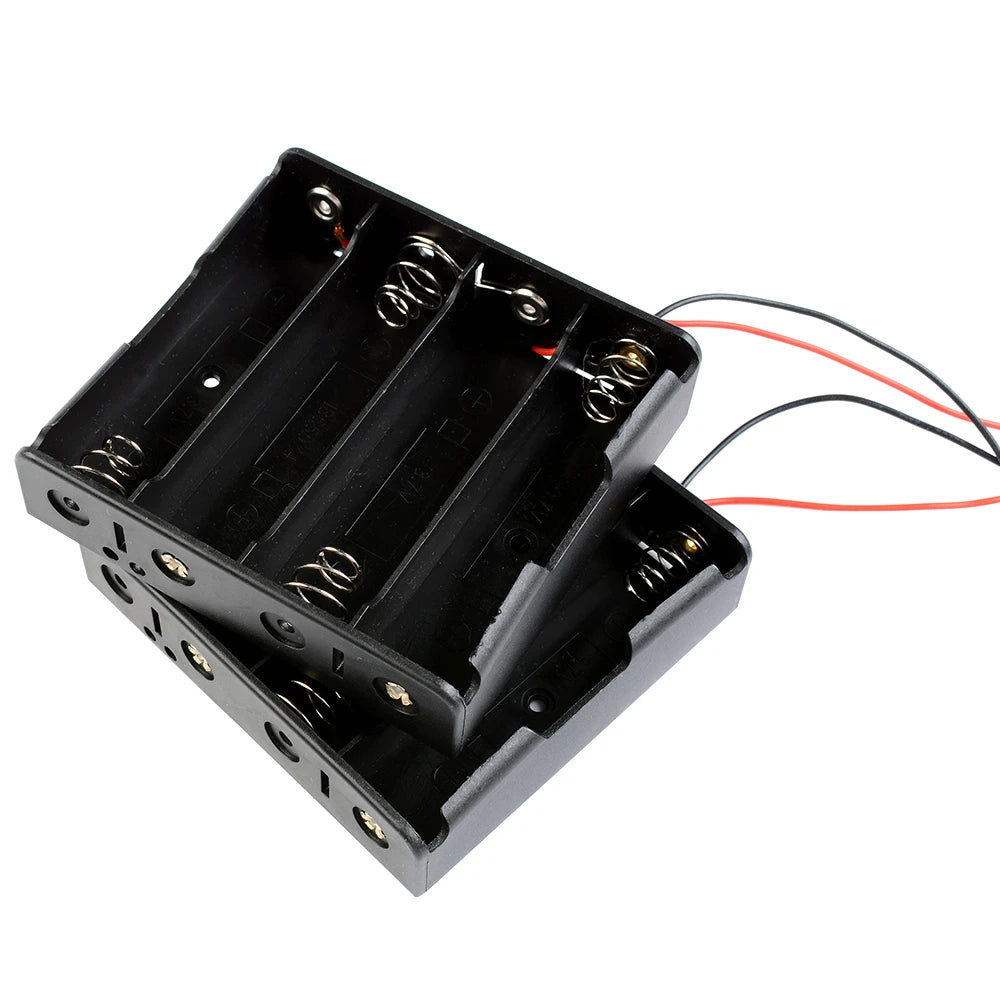A 4 x AA battery holder box without cover, designed for assembling compact battery packs for electronic projects.