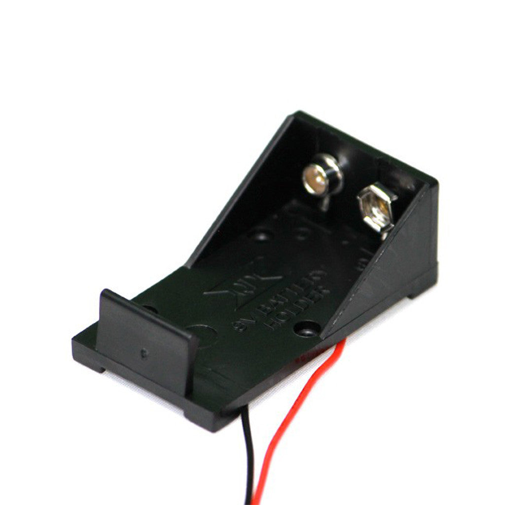 A 9V cell box without cover, suitable for holding a 9V battery in electronic devices.
