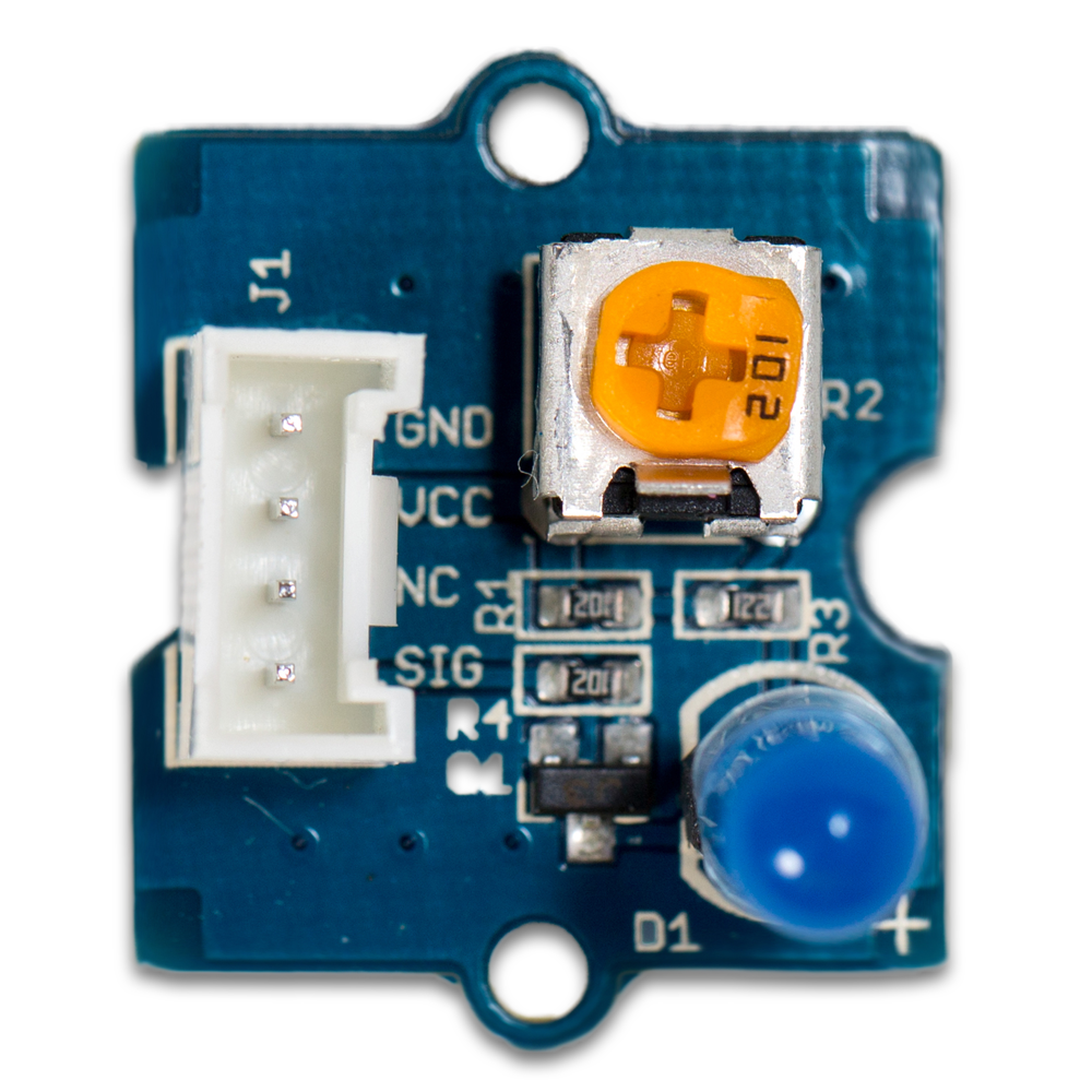 The Blue LED Grove module is another LED variant, emitting a blue color. Blue LEDs are often used for various applications, and their inclusion in the Grove system allows for easy integration into projects requiring blue indicator lights