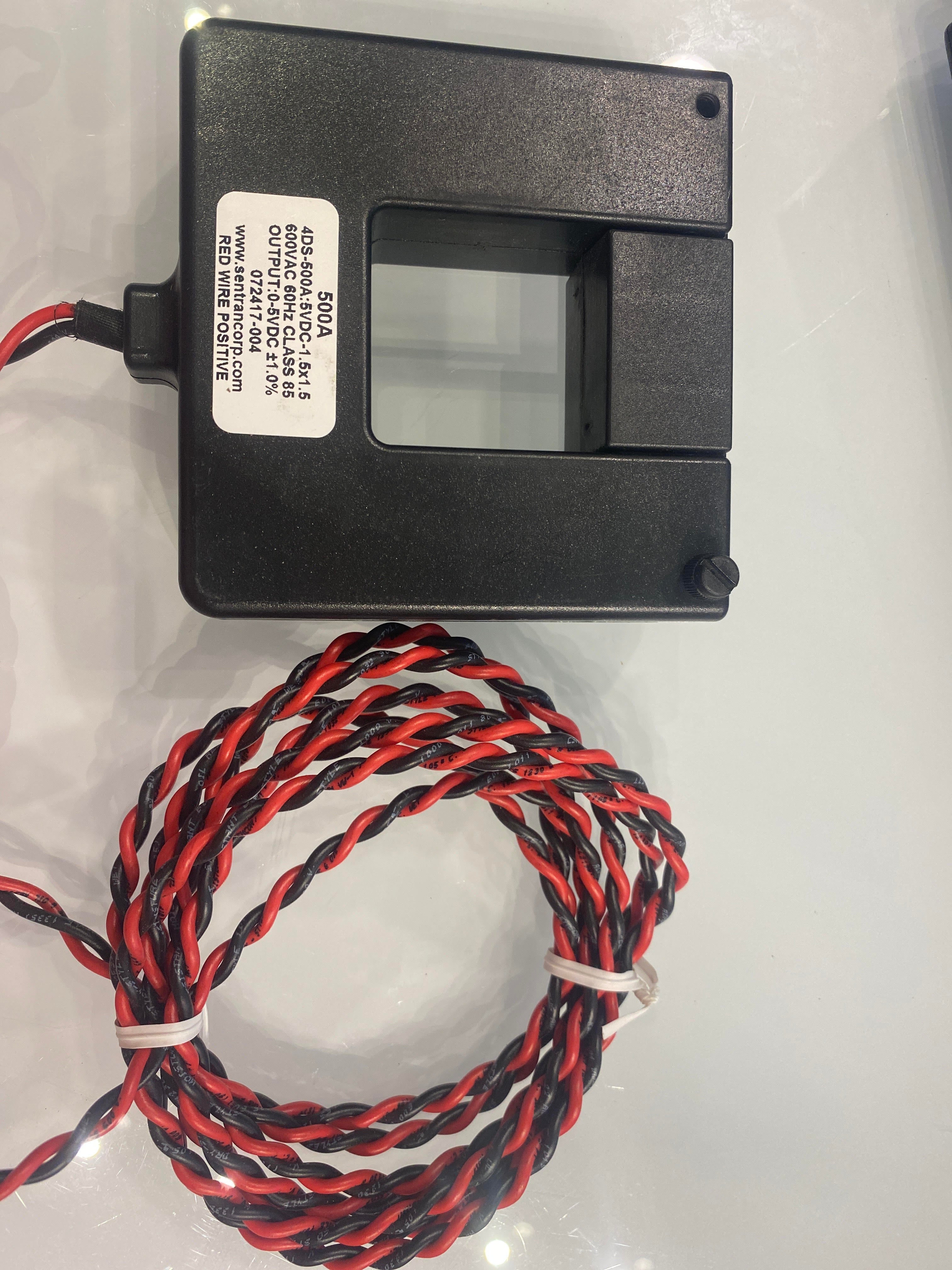This current transformer is designed to measure high currents, with a rating of 500A. Current transformers are commonly used in energy monitoring and protection circuits.