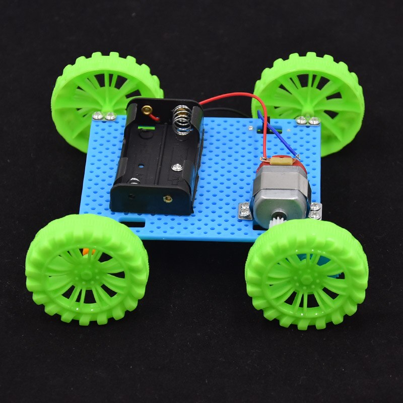 A DIY kit containing small wheels designed for building a small car. This kit typically includes the necessary components for constructing a simple, motorized vehicle suitable for educational or hobbyist purposes.