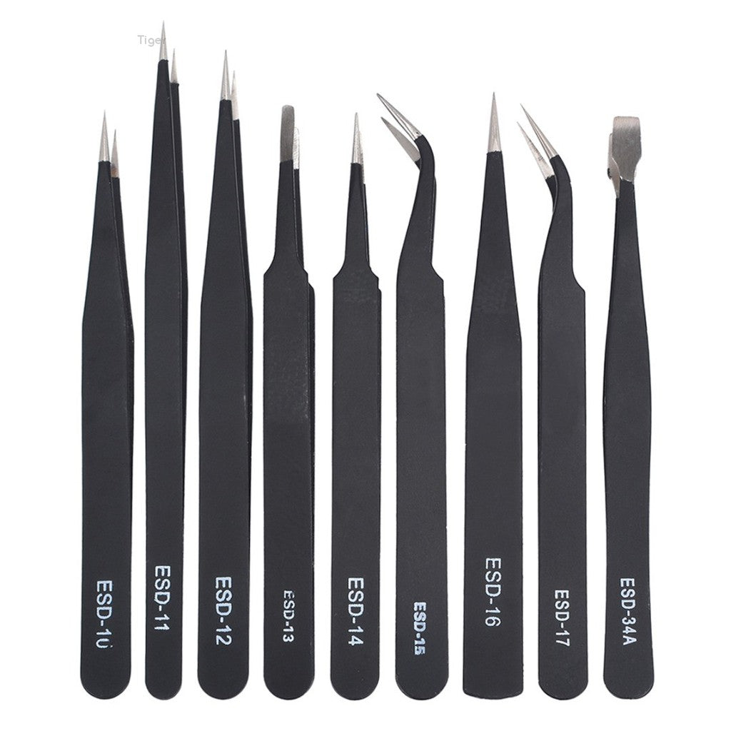 The Electrostatic Discharge ESD-10 tweezers are part of a series of antistatic tweezers, specifically engineered to prevent damage to sensitive electronic components due to electrostatic discharge. These tweezers feature a fine tip, making them ideal for delicate and precise handling of small electronic parts. The antistatic coating ensures that any static electricity is safely dissipated, safeguarding the integrity of the components.