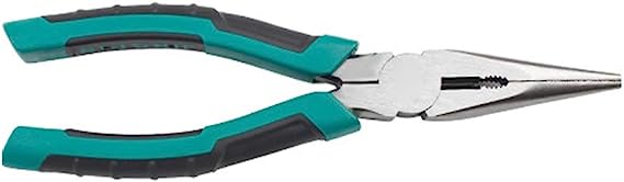 The Green Long Nose Plier is a hand tool with an elongated, pointed nose, designed for precision gripping, bending, and cutting in various applications. The green color may serve as a distinctive identifier.