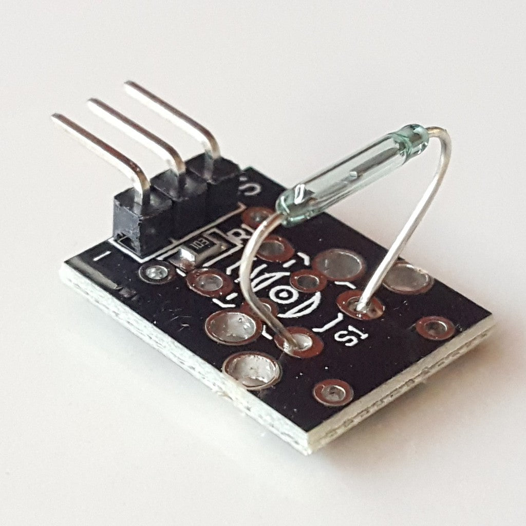 A miniature module with a magnetic reed switch, often used for proximity sensing or detecting the opening and closing of doors.