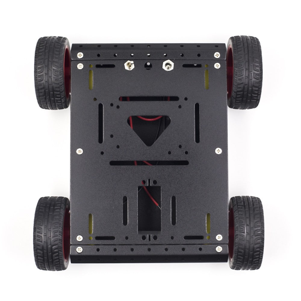 A black-colored metal tank robot smart car chassis, offering a sturdy base for constructing versatile robotic projects.