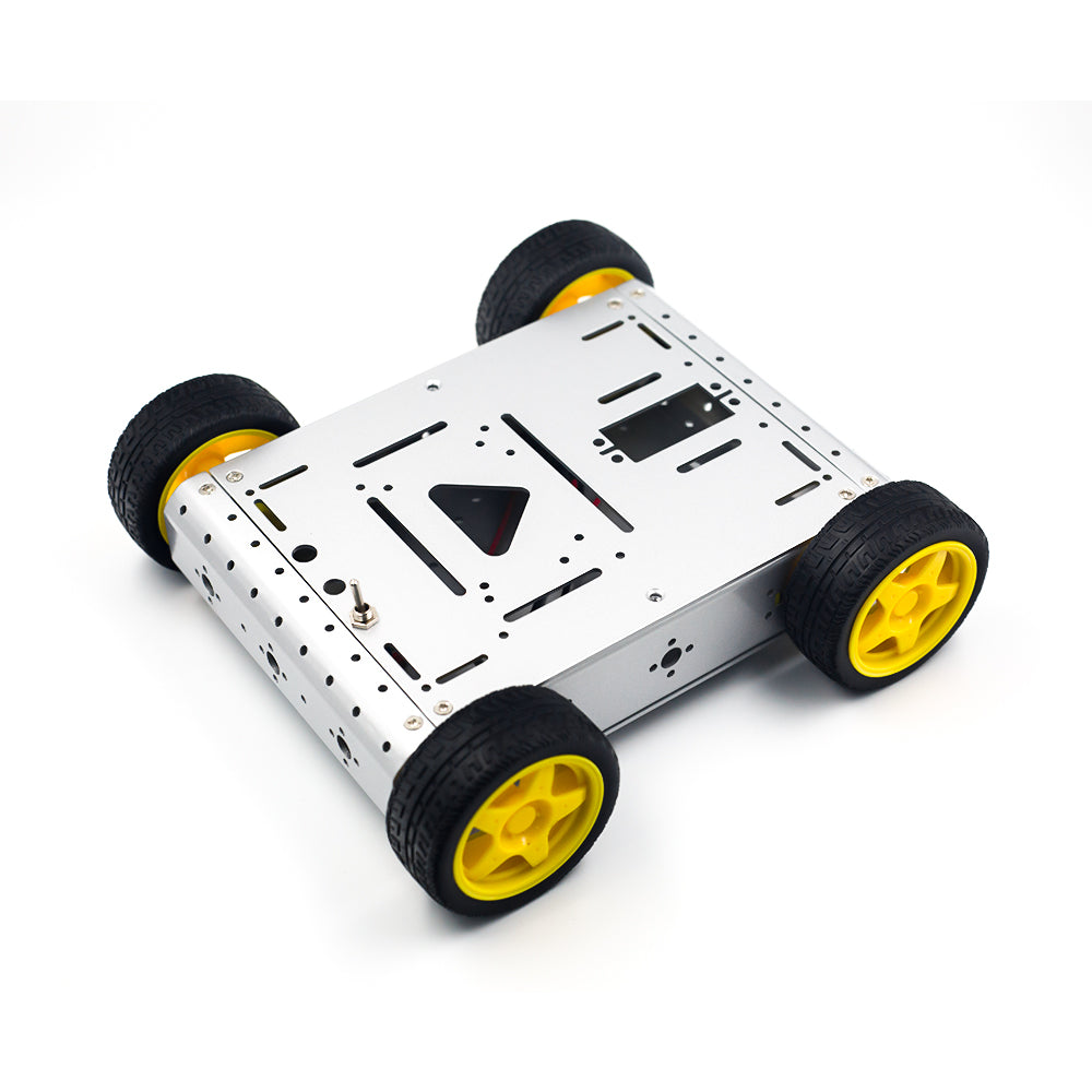 A silver-colored metal tank robot smart car chassis, providing a robust and durable frame for building robotic vehicles.