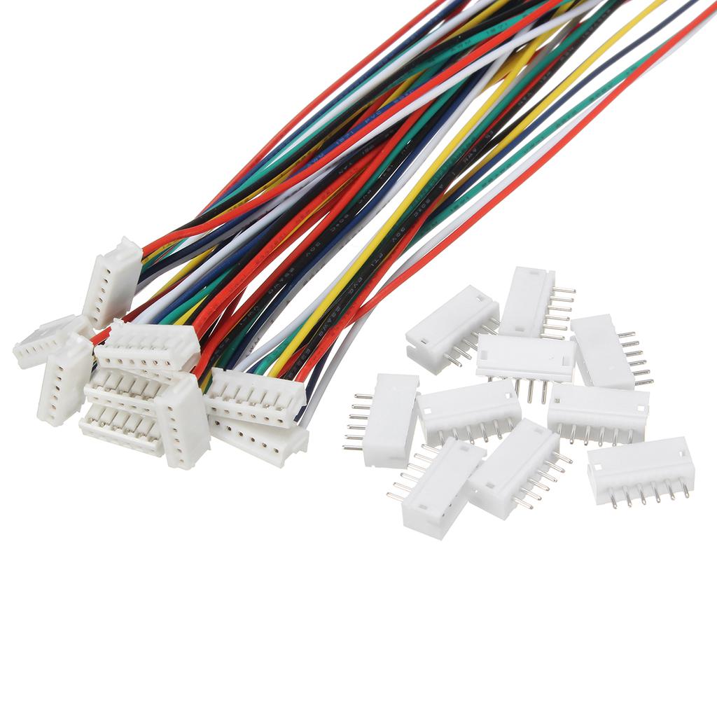 This Micro JST connector features six pins and comes with attached wires. It is commonly used in small electronic projects where a compact and reliable connector is required. The 6-pin configuration allows for various connections in circuits or between modules.