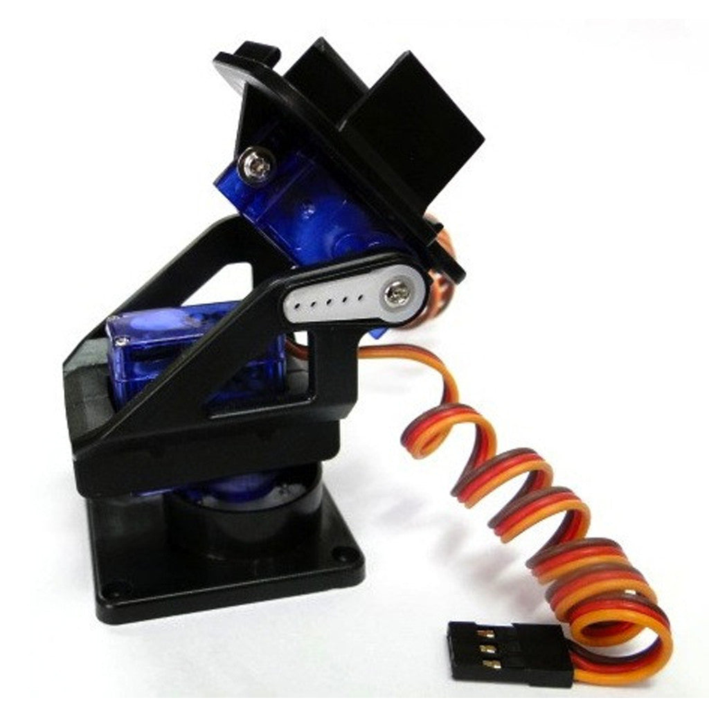 A pan-tilt bracket designed to hold servo motors like SG90S or MG90S. This bracket allows for the rotation of a device along two axes, commonly used in camera or sensor positioning systems.