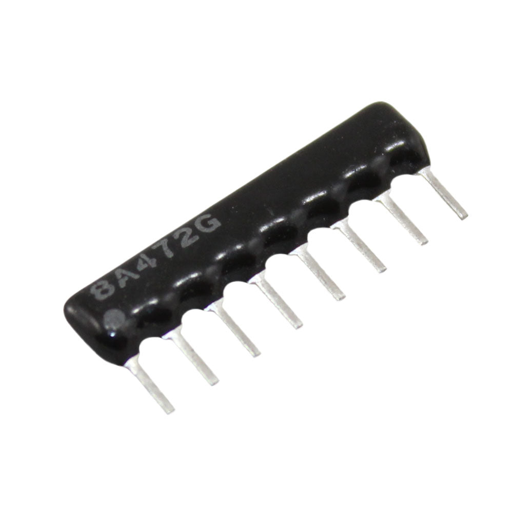 An 8-pin resistor array featuring multiple resistors with a total resistance of 10 kilohms (10K ohms). Resistor arrays are often used in applications where multiple resistances are needed.