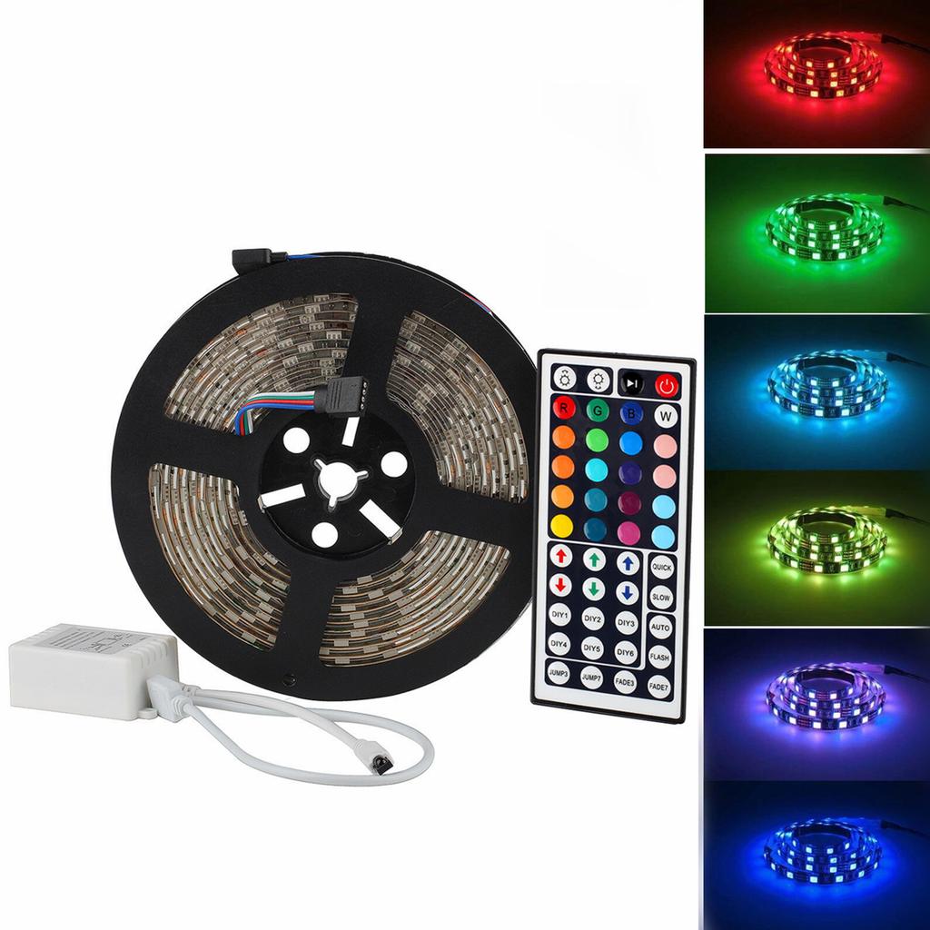 This 5-meter roll of non-waterproof RGB 5050 SMD LED strip is flexible and suitable for indoor lighting applications. It allows for dynamic color changes with red, green, and blue LEDs.