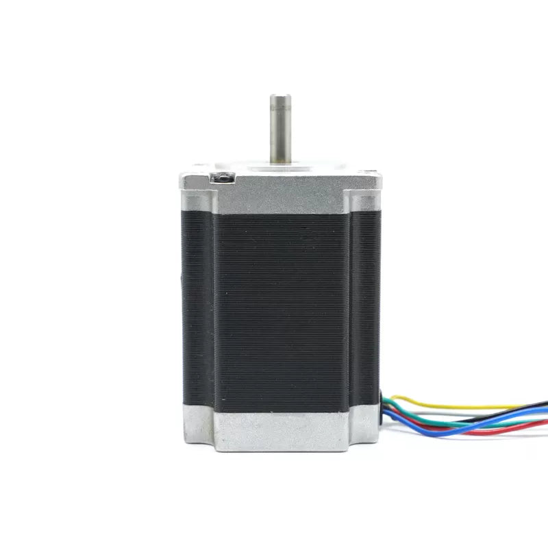 The Nema23 stepper motor with a 0.9-degree step angle and 2.8A current is denoted by the model 57BYGHM604-09. Stepper motors with lower step angles are preferred for applications requiring higher precision, making this motor suitable for tasks demanding finer control.
