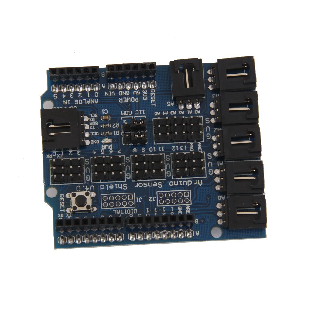 A sensor shield (version 4.0) compatible with Arduino boards, providing convenient connections for various sensors.